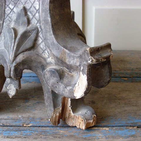 Stor 1800tals alterstage i træ belagt med bladsølv, super lækker patina. Fremstår med et lille afslag på den ene fod se billed. Højde 109cm.