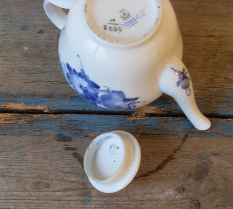 Royal Copenhagen Flettet Blå Blomst tekande, rummer 1L. No. 8244, 1. sort Fremstår med en brændings fejl inden i låget se billed. Højde 15,5cm.
