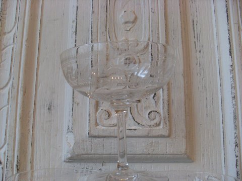 Fine champagne skåle med ætset græsk evigheds mønster. De er produceret i 1920érne. Højde 9,5cm.