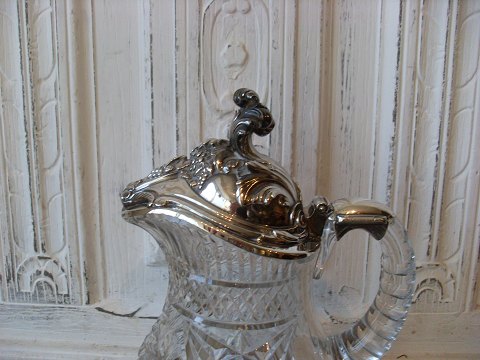 Stor krystal kande med tysk Rokoko inspireret sølv låg.