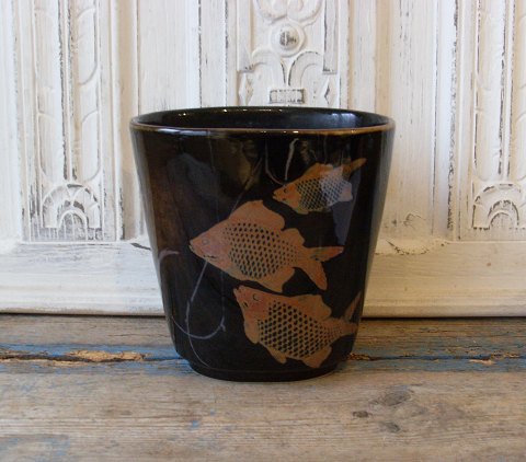 Niels Thorsson for Royal Copenhagen unika vase med luster glasur, dekoreret med fisk.