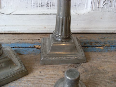 Par Louis XVI tin stager stemplet 1708 Fremstår med skader - se billederne. Graveret med initialer samt årstal 1810 Højde 19cm.