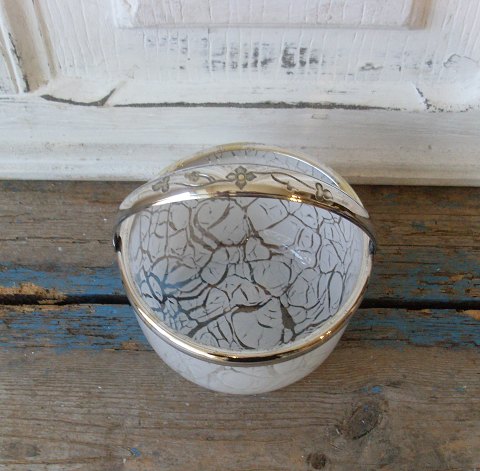 Smuk sukkerskål i to farvet glas med forsølvet hank.