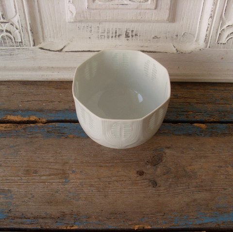 Lisbeth Munch Petersen for B&G skål i Blanc de Chine, med mønster i relief i form af kornaks. No. 767, 1. sort. Højde 11cm. Diameter 13cm.