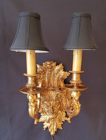 Mascaron med svungne lysarme prydet med smukke kvinde ansigter.
