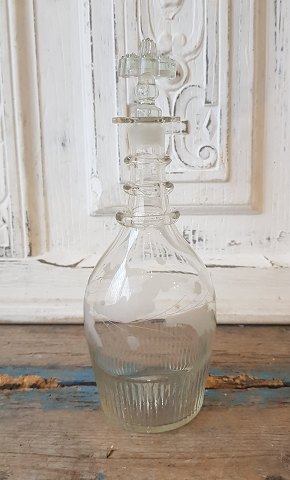 1800tals lille egeløvs karaffel - fastblæst riflet bundparti, tre runde ringe om halsen, indboret for presset prop. 8-oddet stjerne i bunden.