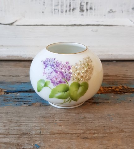 Royal Copenhagen kuglevase dekoreret med syrener No. 42A, 1. sort. Produceret mellem 1894-1900 Højde 5,5 cm.