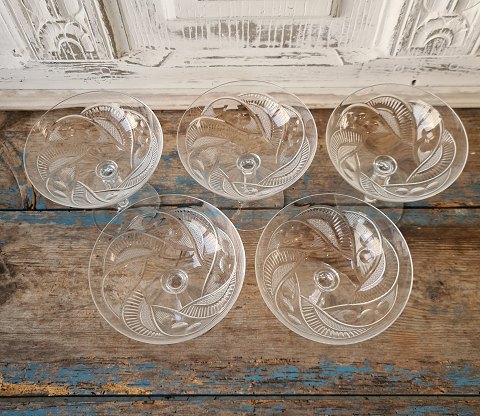 Sæt på 5 champagneskåle i krystal med smukke slibninger