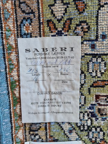 Beautiful rug wool and silk - decorated with medallion, animals and flowers. Appears in fine condition. Dimensions 136 x 213 cm.