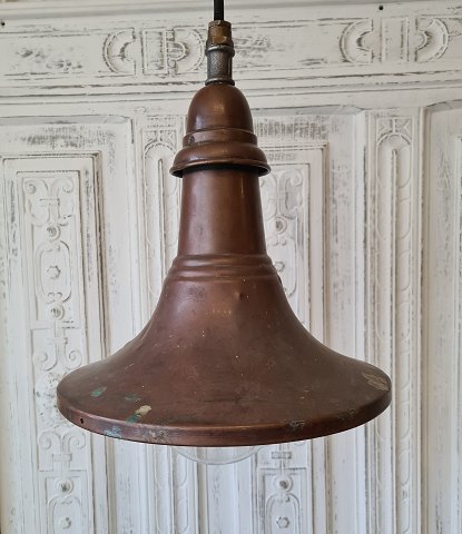 Kobber pendel - oprindeligt gadelampe fra København Fremstår med super lækker patina, kan naturligvis pudses op. Højde 31 cm. Diameter 30 cm.