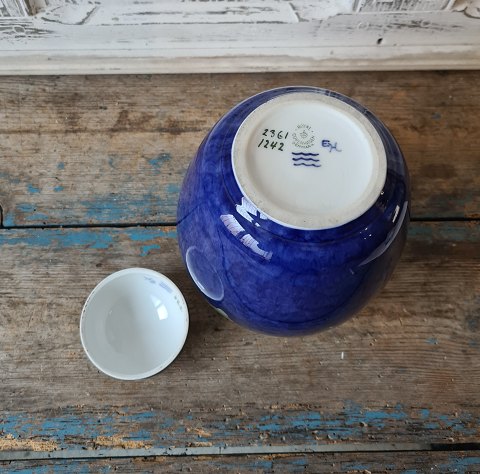 Royal Copenhagen Art Nouveau vase decorated with strawberry flowers, strawberry leaves on a blue base. Painted by Else Hasselriis 1878-1953 |