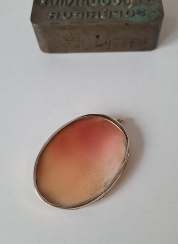 1800tals stort camé vedhæng fattet i 8 kt guld. Meget smukt såret. Fremstår ustemplet, men syretestet til en lødighed på 8 kt. Mål 3,8 x 5 cm.