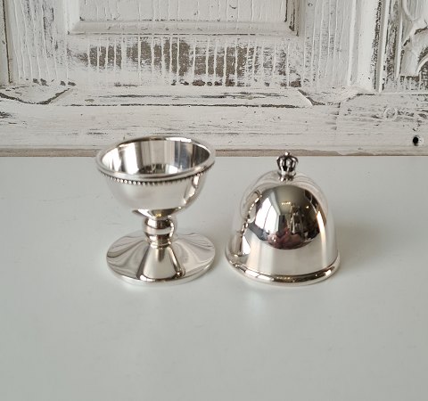 Egg cup in sterling silver, the top of the lid is designed as a crown. Stamp: Holmsted - Sterling - Denmark Height 10 cm.