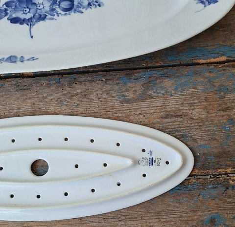 Royal Copenhagen Blue Flower Braided fish dish with grate No. 8022/8243, Factory first Measures 60.5 x 25 cm.