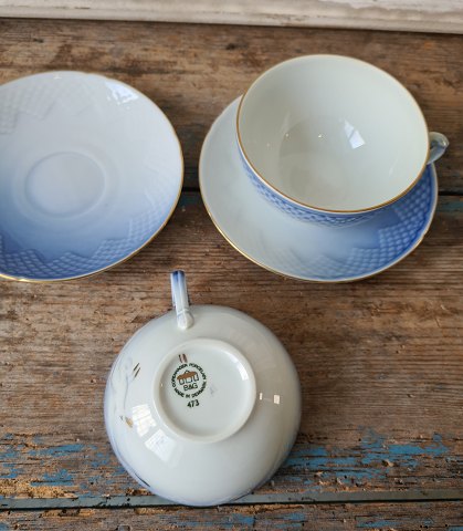B&G Seagull with gold tea cup No. 473/108, Factory second Measure on the cup itself: Height 5 cm. Diameter 10 cm. Diameter of saucer 14 cm. Stock: