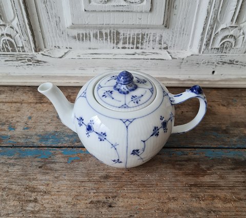 Royal Copenhagen musselmalet riflet lille tekande No. 258, 1. sortering Højde 13 cm. Længde 13,5 cm. Produceret mellem 1894-1900