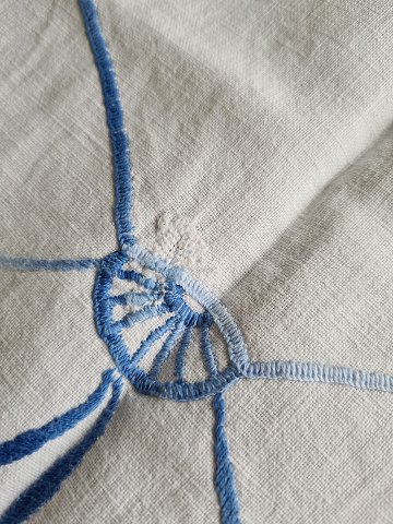 Embroidered tablecloth with Empire pattern With a small finely executed repair - see picture Dimensions 130 x 130 cm.