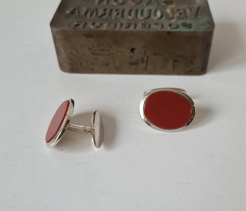 Vintage cufflinks in silver with carnelian by Hugo Grünn Stampet: HGr - 830s Measure on the button itself 17 x 23 mm.