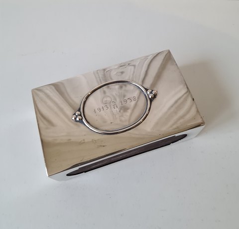 Beautiful large match holder in silver. With engraved year 1913 - 3/11 - 1938 Stamped the three towers Measure 6 x 10.5 cm. Height 4 cm.
