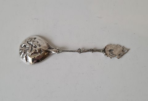 Sugar spoon in silver, richly decorated with ship on the shaft