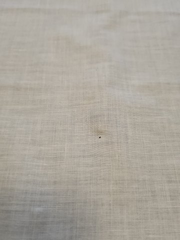 Table runs embroidered with blue fluted pattern Measures 46 x 91 cm. Appears with microscopic hole - see picture.