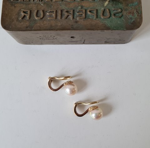 Vintage Akoya perle øreklips i 14 kt guld. Perlerne har et smukt rosa skær. Stemplet: 585 - GA Længde: 16 mm. Diameter på perlen: 7,7 mm.