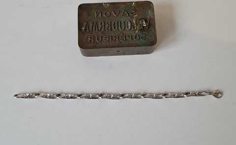 Leddelt armbånd i sterlingsølv. Led i form af snoet ottetal. Stemplet: 925 Længde 20,5 cm. Bredde 6,4 mm. Vægt 16,5 gram.