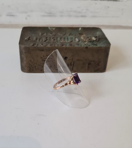 Vintage ring in 18 kt gold with emerald cut amethyst