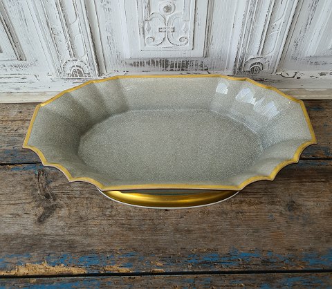 Royal Copenhagen green Craqueleé jardiniere on foot with gold edge. No. 457/2616, Factory first Measure 21 x 42.5 cm. Height 13 cm.