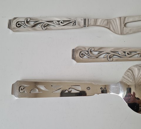 Serving cutlery in silver with ornamental decoration from Horsens Silver Stamped the three towers 1947 - HS