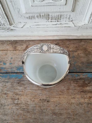 1800 tals sukkerskål i hvid opaline monteret med forsølvet hank.