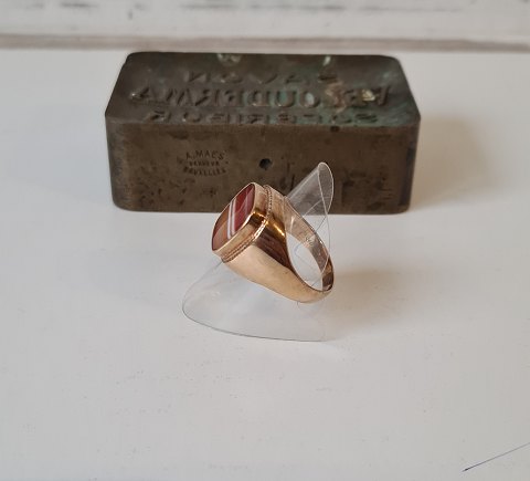 Vintage herrering i 14 kt guld med bånd agat Stemplet 585 Ringstørrelse 59 Mål på stenen: 13,5 x 14,8 mm.