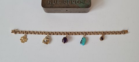 Vintage Bismarck armbånd med 5 charms i 14 kt guld