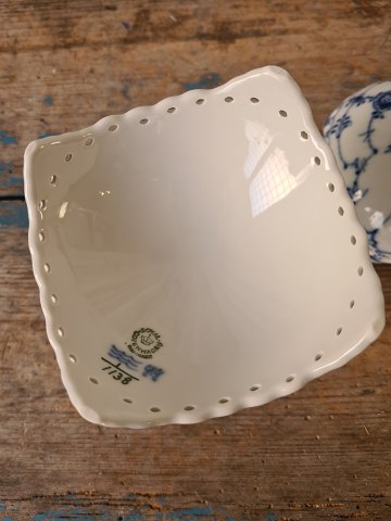 Royal Copenhagen Blue fluted full lace pair of candlesticks No. 1138, Factory first Height 10 cm.