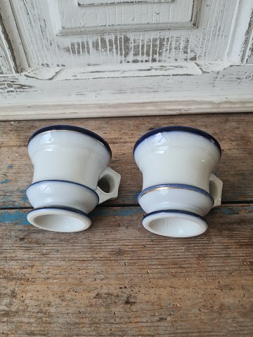 Par franske café brûlot kopper i kraftigt jern porcelæn dekoreret med blå og guld striber Højde 7,2 cm.