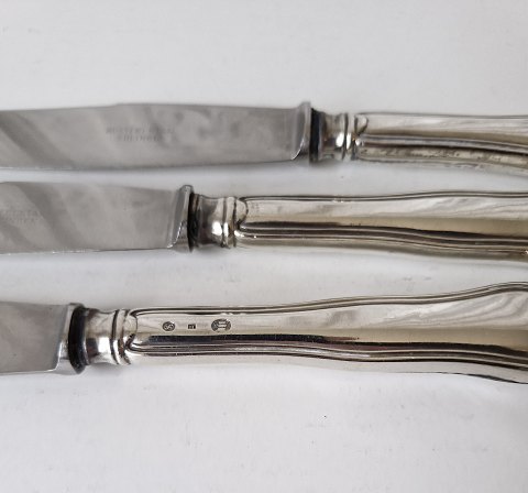 Dobbeltriflet stor middagskniv i sølv og stål 25 cm.