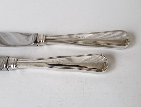 Dobbeltriflet middagskniv i sølv og stål Stemplet de tre tårne - HD 830s Længde 22,2 cm. Lager: