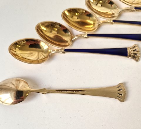 Set of 11 coffee spoons in gold-plated sterling silver and blue enamel decorated with a royal crown