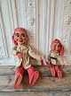 Par gamle fine butiks nisser, deres hoveder er fremstillet i håndmalet keramik, arme og ben kan bøjes. Højde 38 & 64 cm.