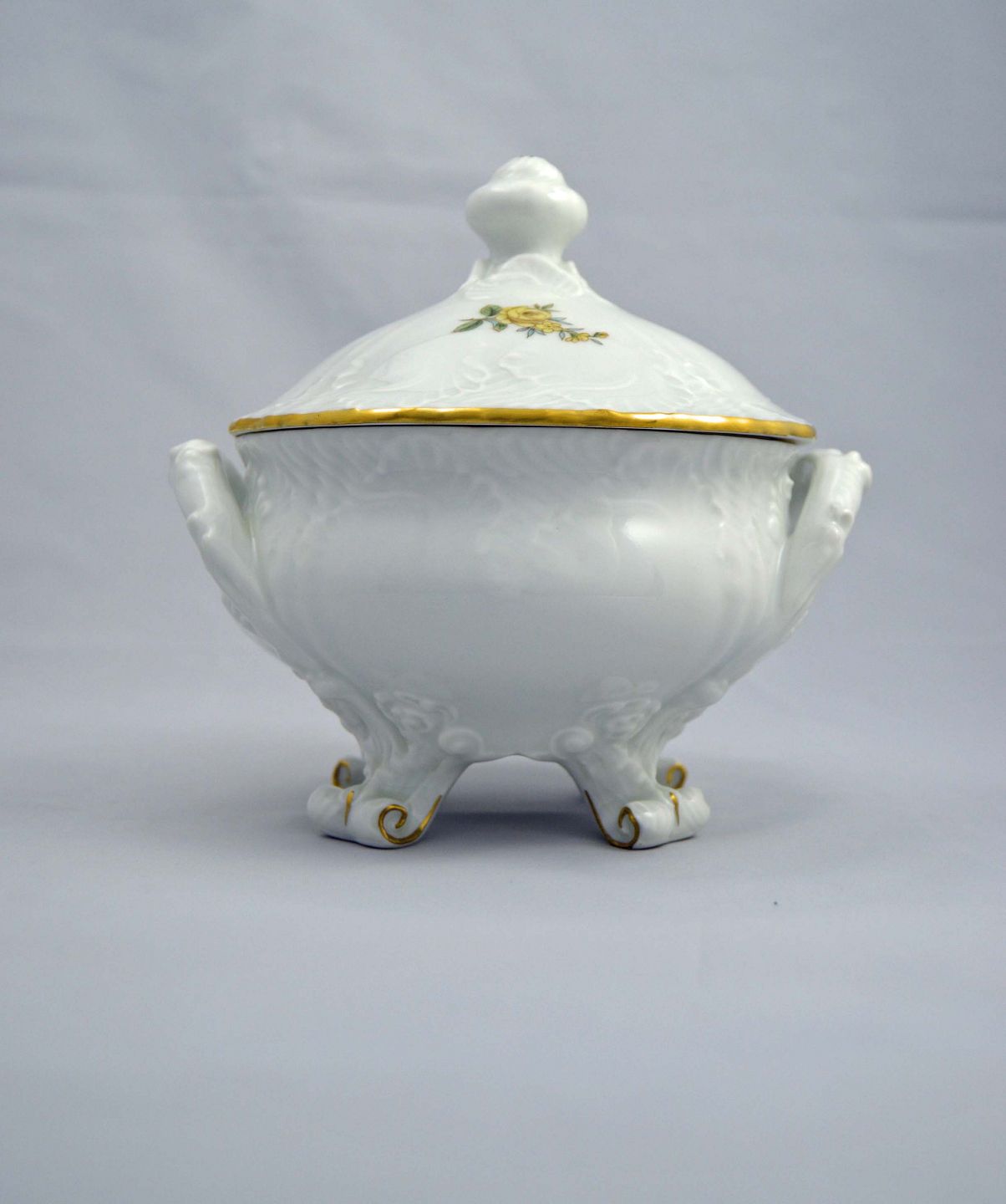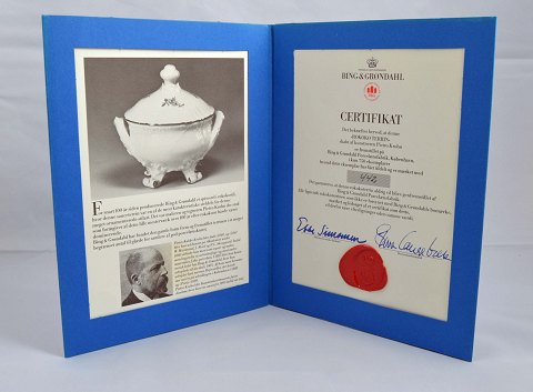 Rokoko terrin designet af Pietro Krohn for B&G. Der er kun produceret 750 eksemplar af denne. B&G Terrinen er i perfekt stand og med den følger certifikat og original kasse. Højde (m/låg): 18 cm. Ø: 14 cm.
