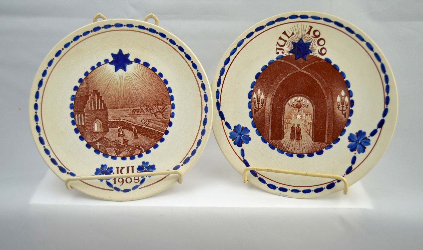 Jul 1908 og Jul 1909, jule plaketter fra Aluminia