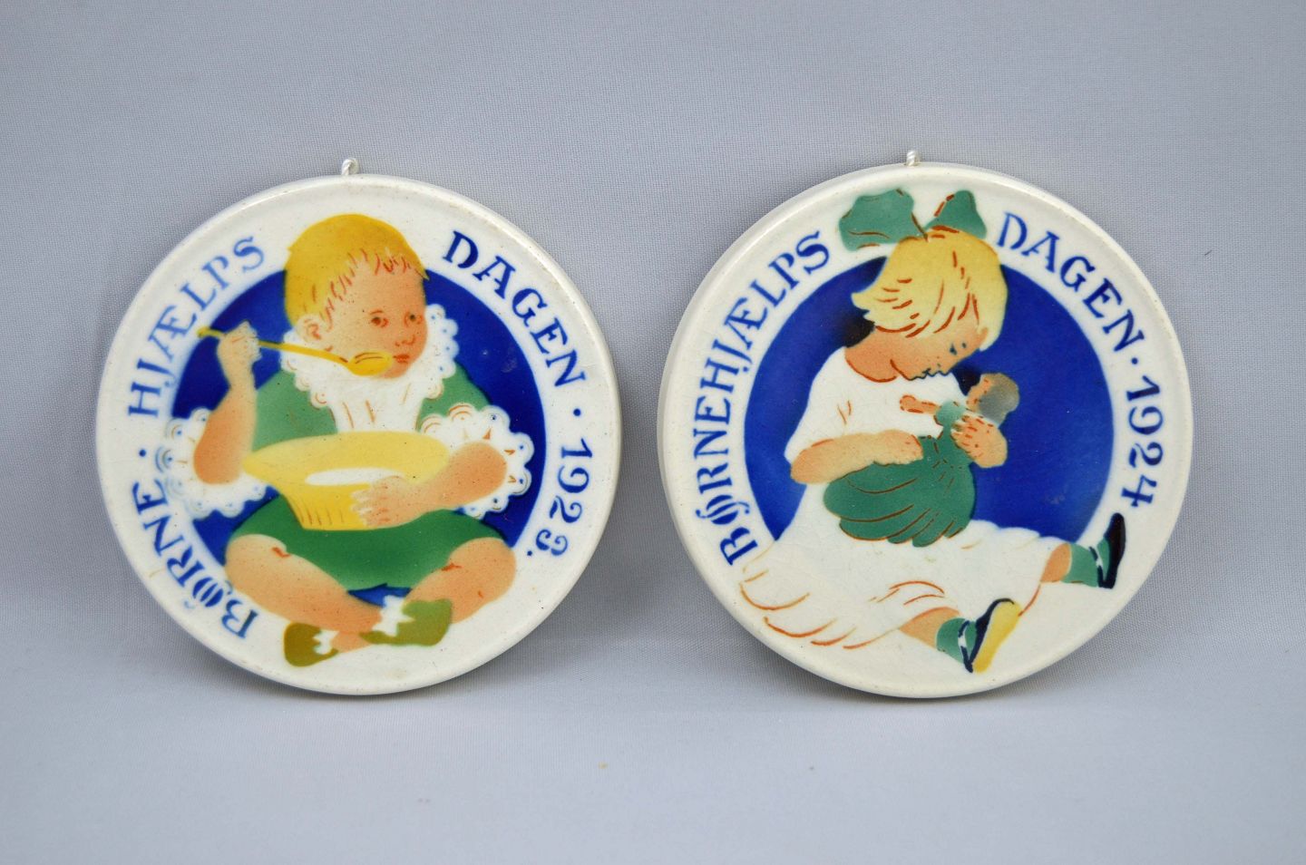 Børnehjælpsdags platte år 1923 og 1924 fra Aluminia.