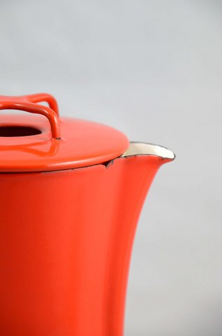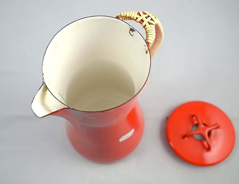 Kanden er fra 1950érne og fremstillet i emaljeret jern. Den står med intakt plastflet. Kanden er i pæn stand.