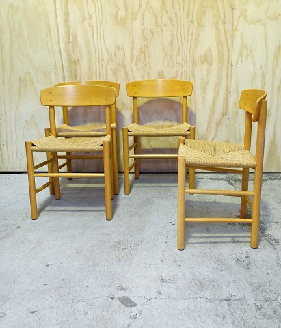 Børge Mogensen Folkestol (model J 39) i lakeret bøg med garnflet. Stolene er i meget pæn stand med flot garnflet.