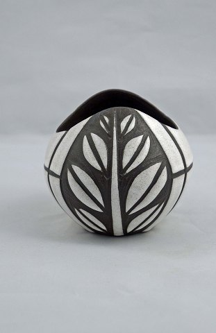 Lille vase (nr. 5375) med bladmotiv. Højde: 10 cm. Ø: 10 cm. kr. 250