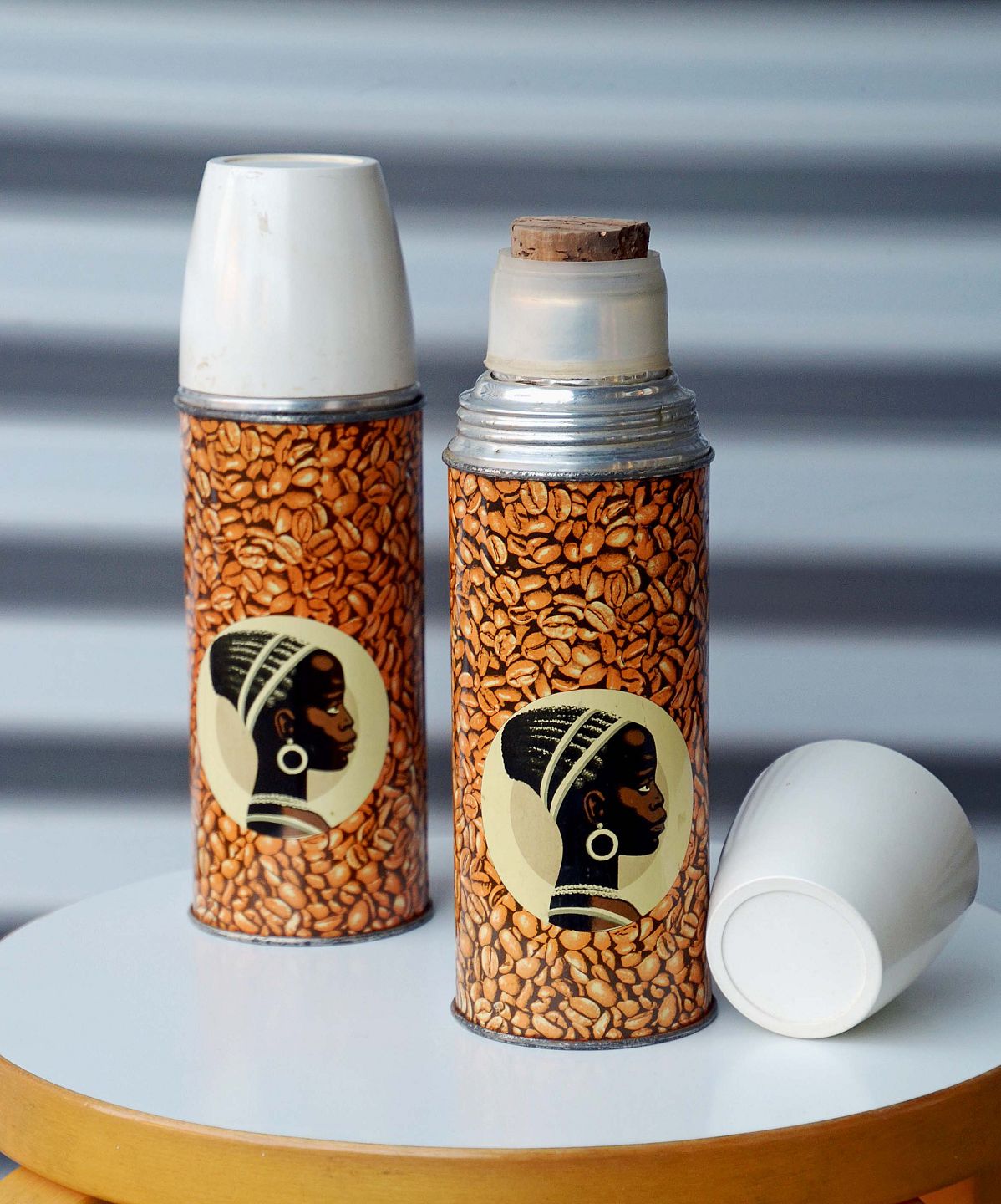 1 styk Cirkelkaffe termokander med korkprop. De er i pæn stand.