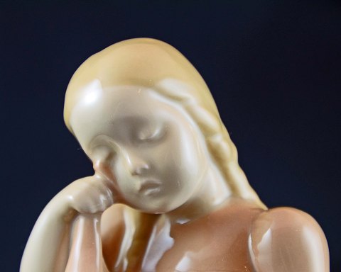 Figur af grædende pige i rosa kjole (nr. 2245) fra Bing og Grøndahl. Figuren er i perfekt stand. H: 17 cm. Ø: 7 cm.
