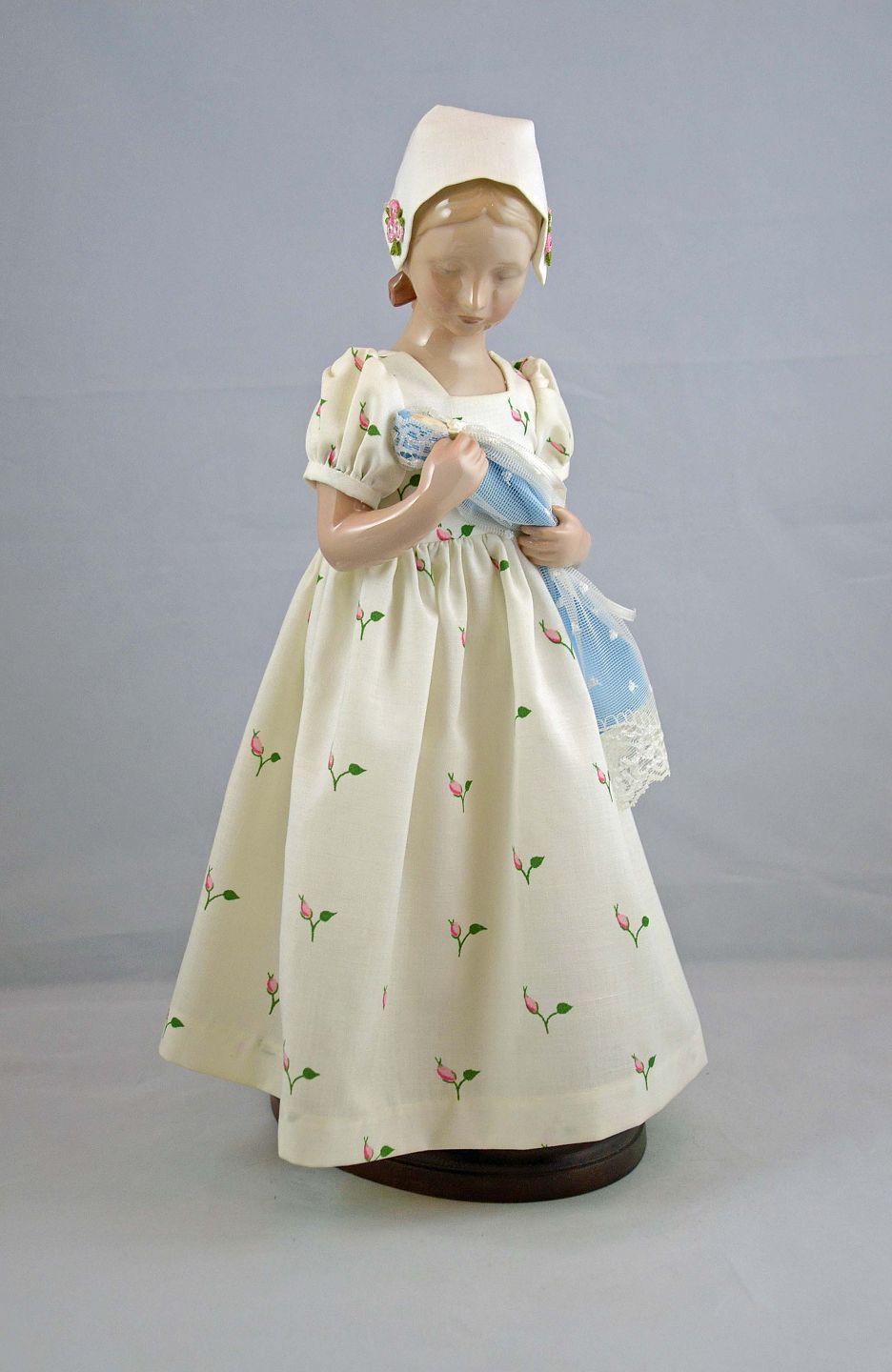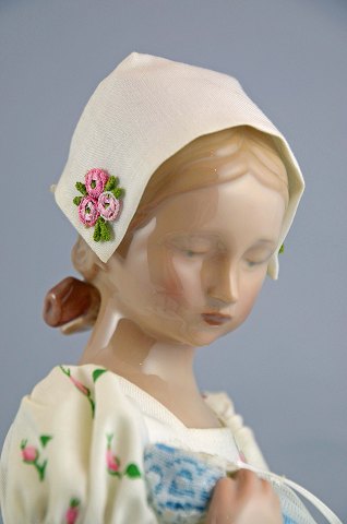 Årsdukke. Porcelænsdukke på stativ - Mary, Doll of the year 1983, First edition fra Bing og Grøndahl. Dukken er i perfekt stand. H: 37,5 cm. B: 18 cm.