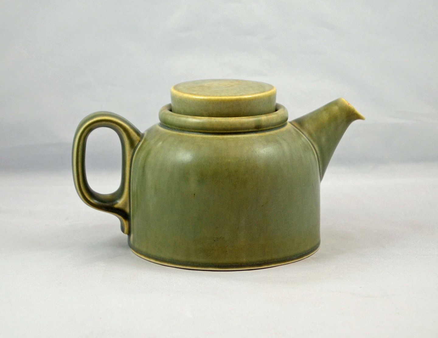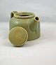 Tekande i stentøj. Kanden er i meget pæn stand. H: 10 cm (m/låg 11,5 cm). L: 21 cm.