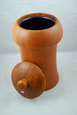 Isspand/vinkøler m/låg i teak og indsats i sort plast fra Digsmed Design Denmark. Spanden er i meget flot stand. H: 30 cm (m/låg 36 cm). Ø: 18 cm.